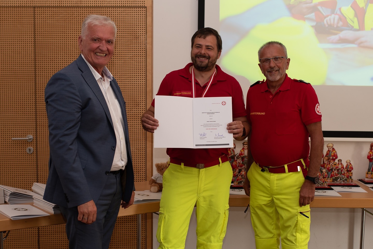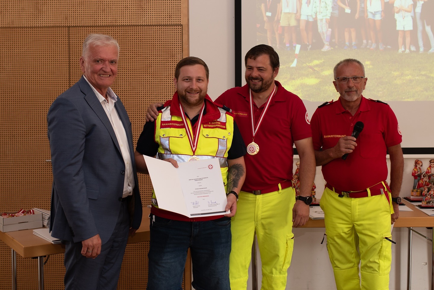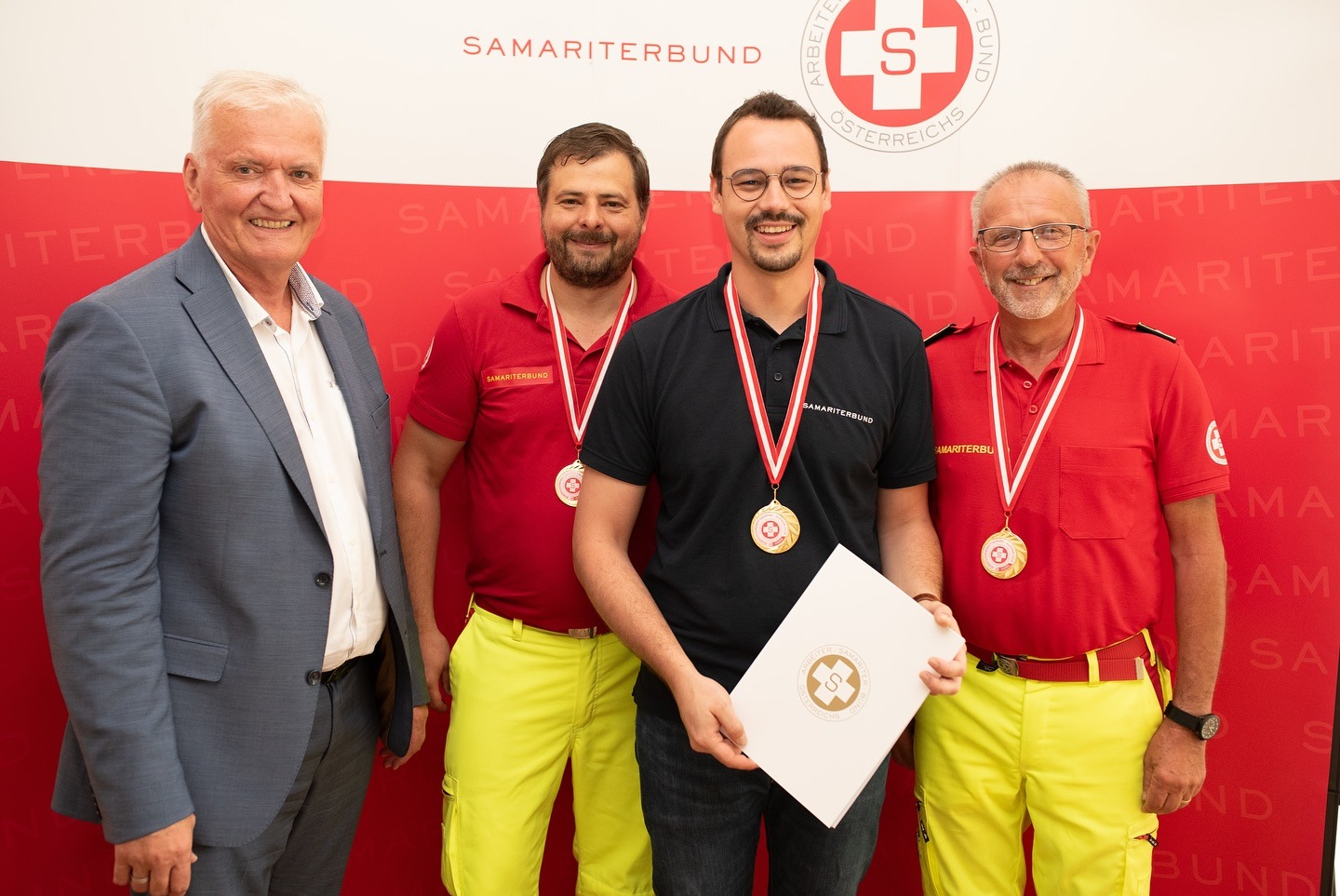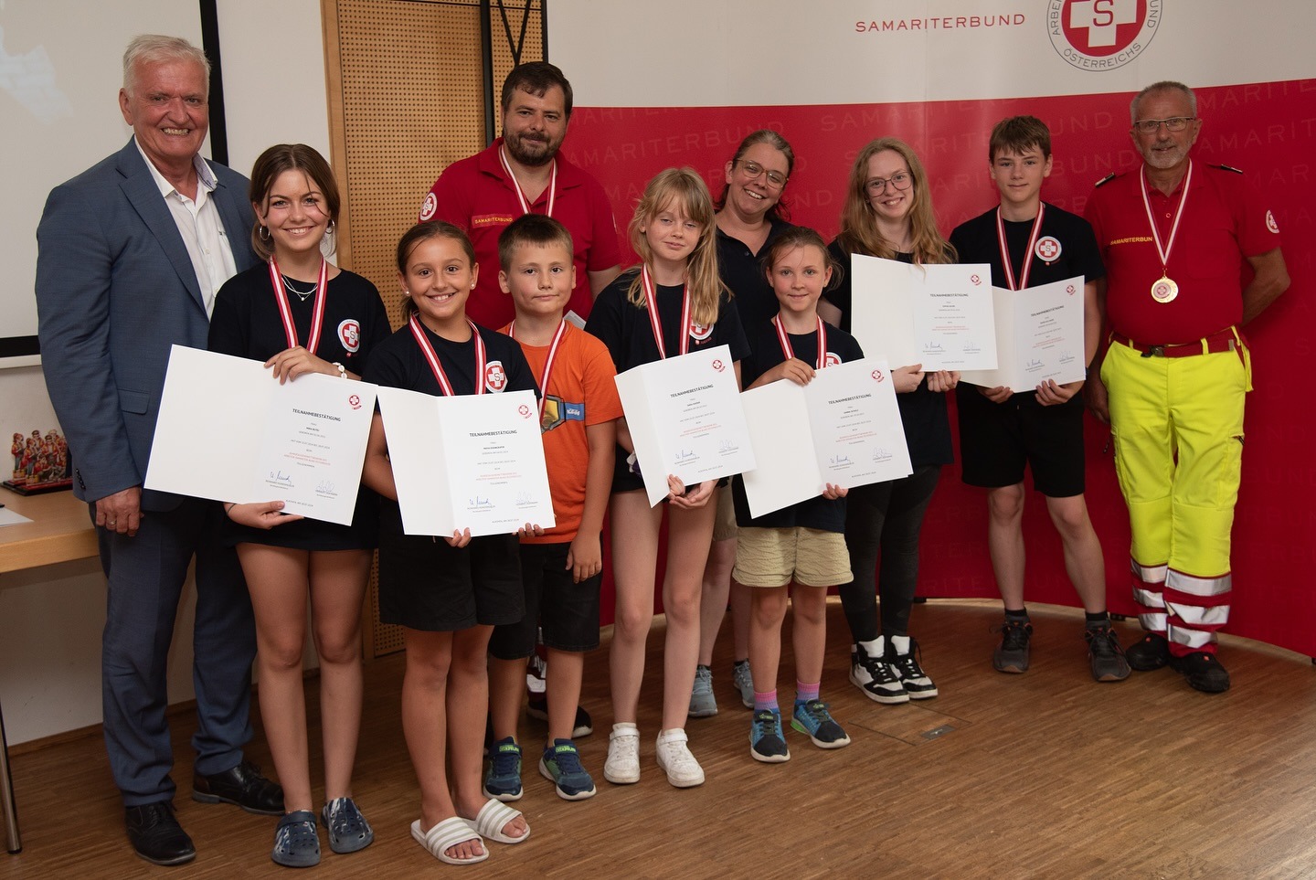 Heute fand die feierliche Siegerehrung statt. ASBÖ-Präsident Franz Schnabl ließ es sich nicht nehmen, den Erste-Hilfe-Champions persönlich zu gratulieren. Dem schließen wir uns sehr gerne an: Herzlichen Glückwunsch an alle – ihr habt euch alle (auch die, die es nicht aufs Stockerl geschafft haben) großartig geschlagen.