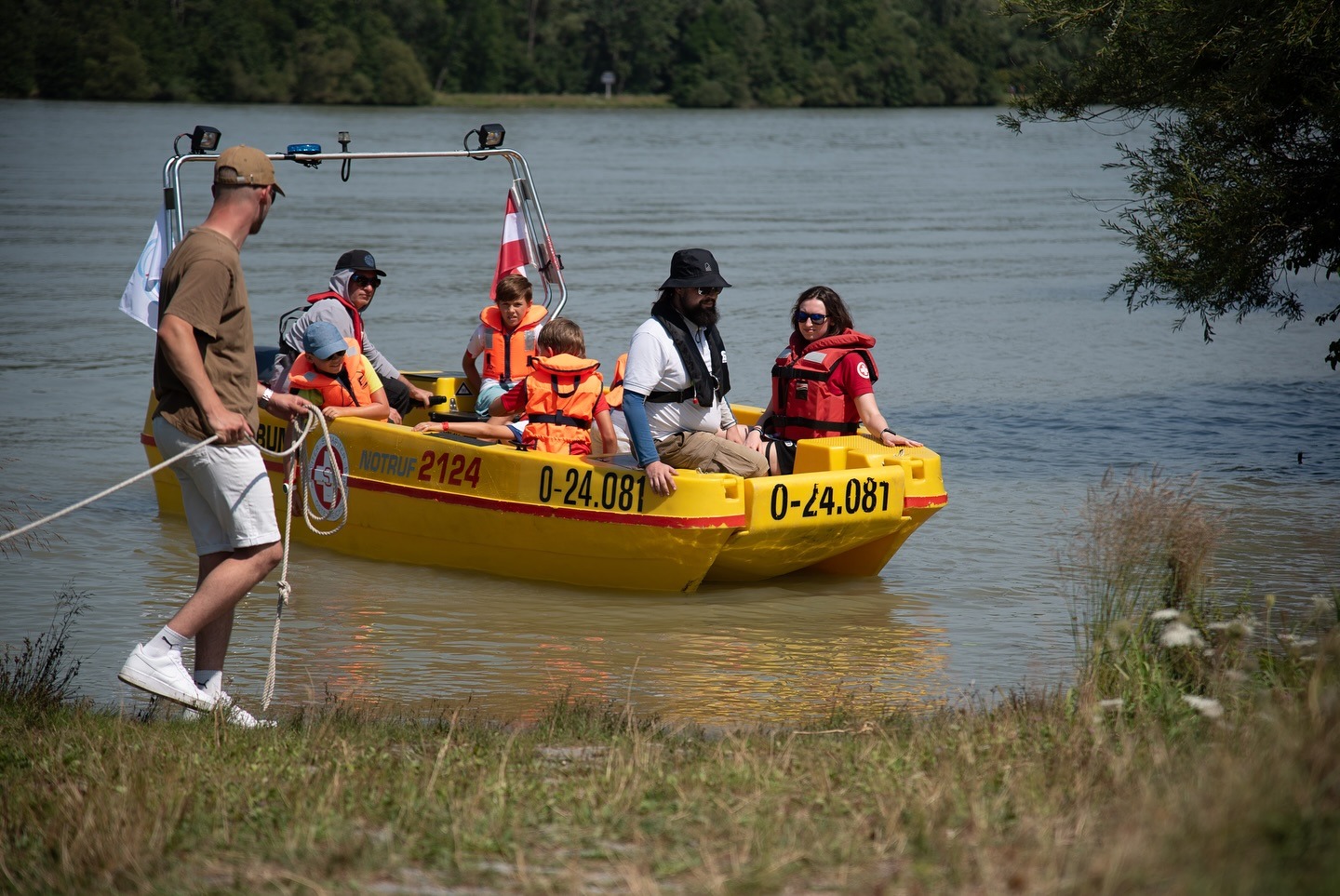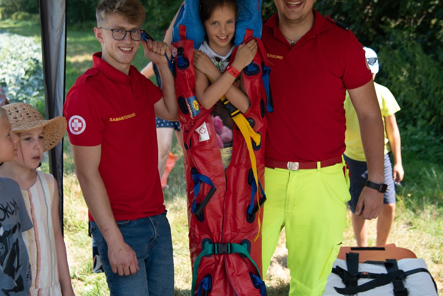 Als Außenstation gab es das Blaulichtfahren, das Fahren mit dem Rettungsboot auf der Donau und unsere Rettungshunde beim Innbach-Spielplatz.