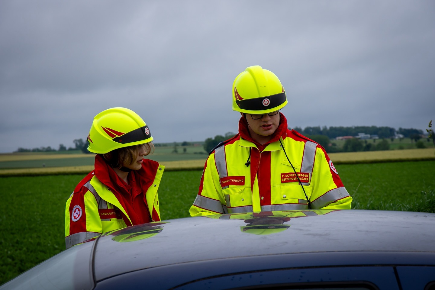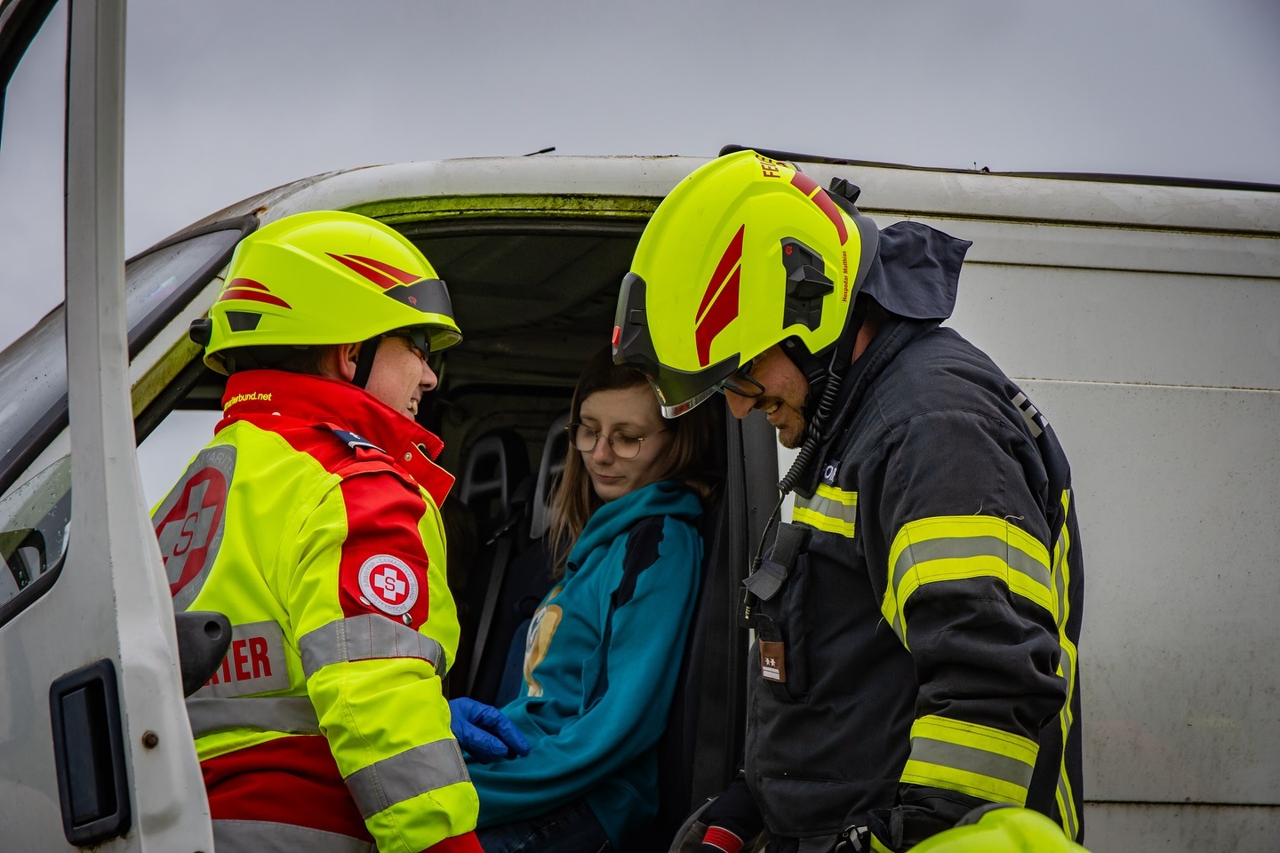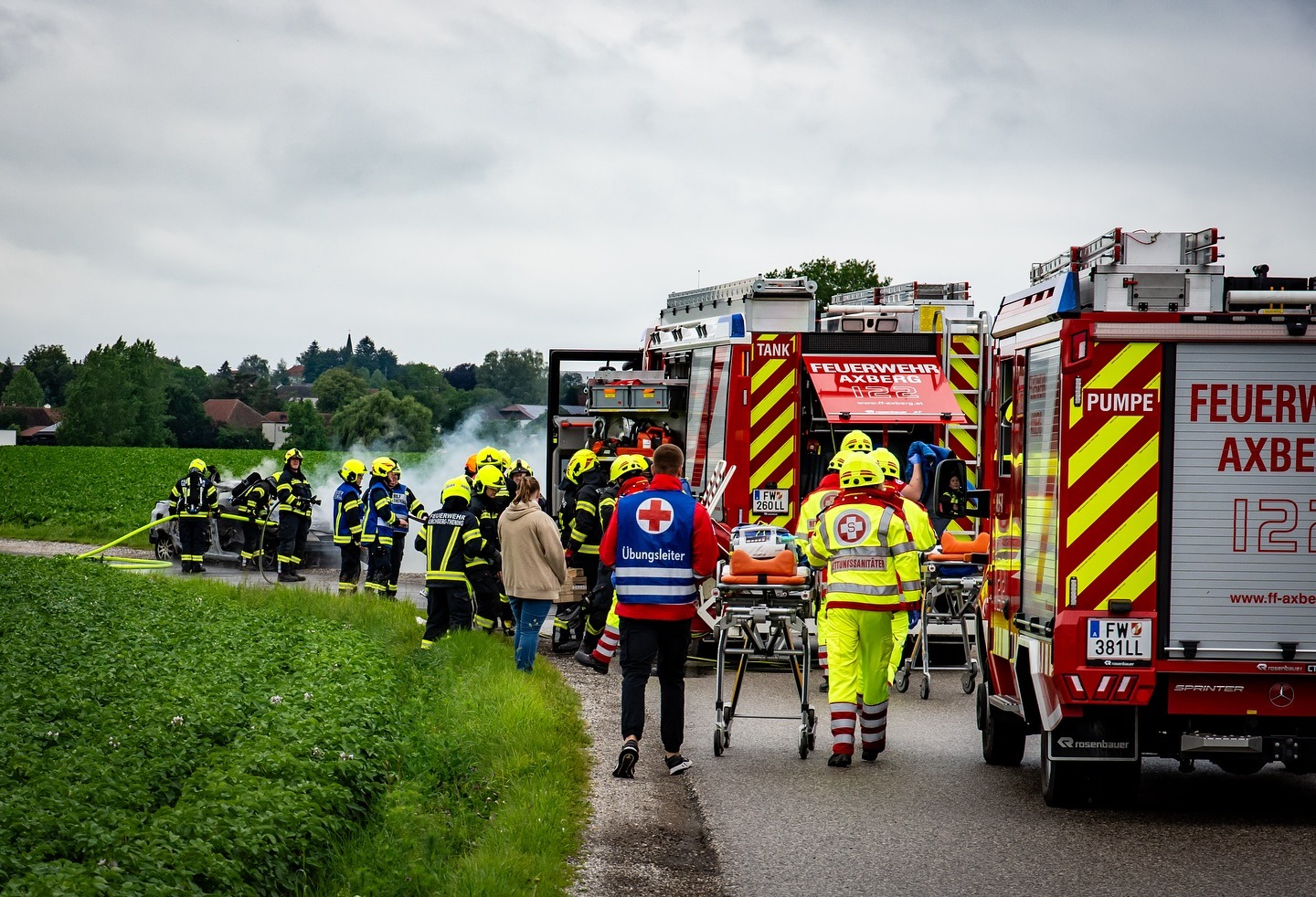 Am Übungsort konnte von den Einsatzkräften der Vollbrand eines PKW festgestellt werden. Ebenfalls wurde angenommen, dass es als Folgeunfall einen Auffahrunfall zwischen einem PKW und einem Kleintransporter gab, wonach drei Personen in den verunfallten Fahrzeugen eingeklemmt waren.