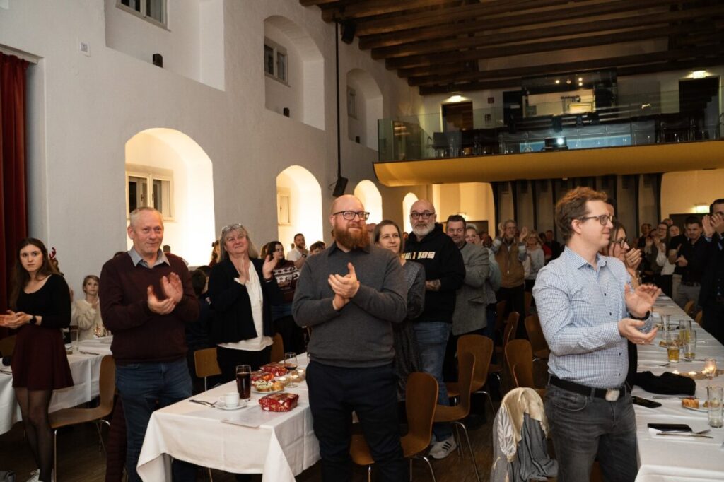 Ein besonderer Moment war die Überraschung für unseren Obmann Ernst Eibensteiner. Für seinen unermüdlichen Einsatz überreichte ihm Andrea Häuserer im Namer aller Mitarbeiter: innen ein Geschenk und trug ein Gedicht vor. Es folgte Standing Ovation, die seine jahrzehnte lange Arbeit würdigte. Ein besonderer Dank gilt auch Lukas Höllhumer, der wieder einmal die wunderbaren Fotos der Feier gemacht hat.